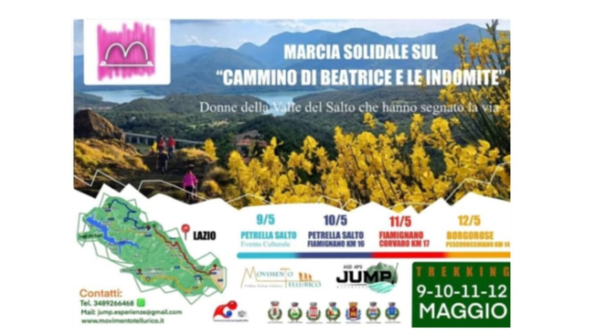 Dal 9 al 12 maggio ne percorreremo un tratto in una nuova Marcia solidale, un evento organizzato da Movimento Tellurico insieme all’”Associazione Jump ASD-APS” ideatrice del Cammino, e sostenuto dalla Comunità Montana Salto Cicolano.